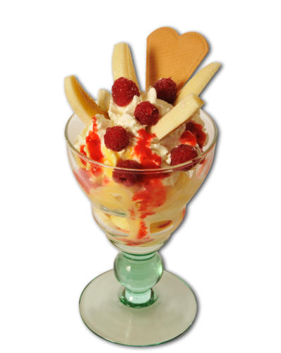 Schokoladen- und Erdbeereis, Joghurt, Erdbeersauce,